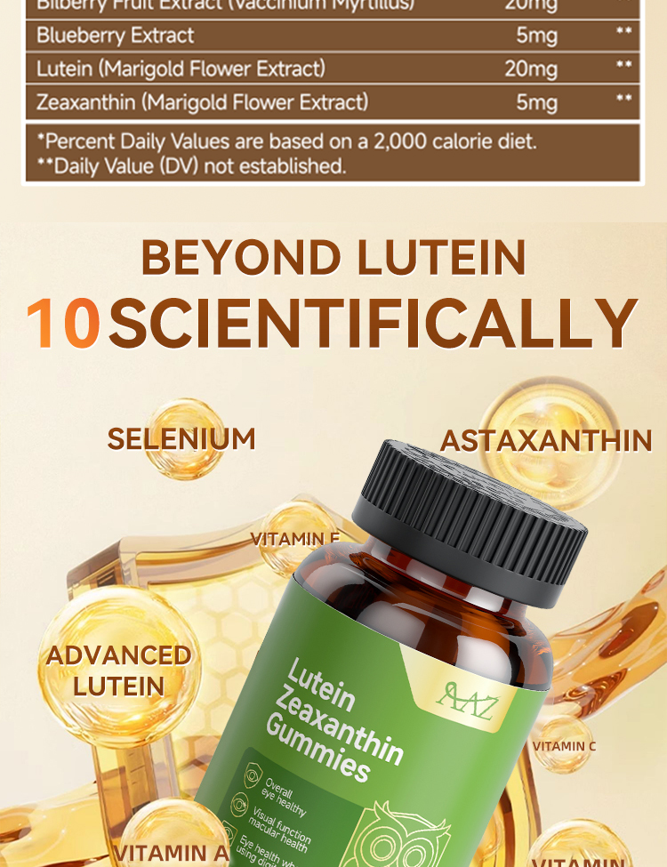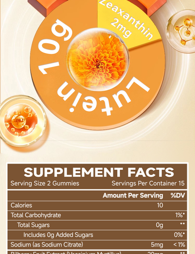 Aging eyes need extra care. These soft gummies eased my fatigue and improved clarity. Love the yellow color – matches the lutein vibe!